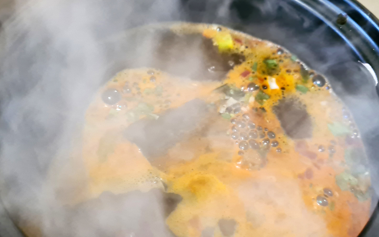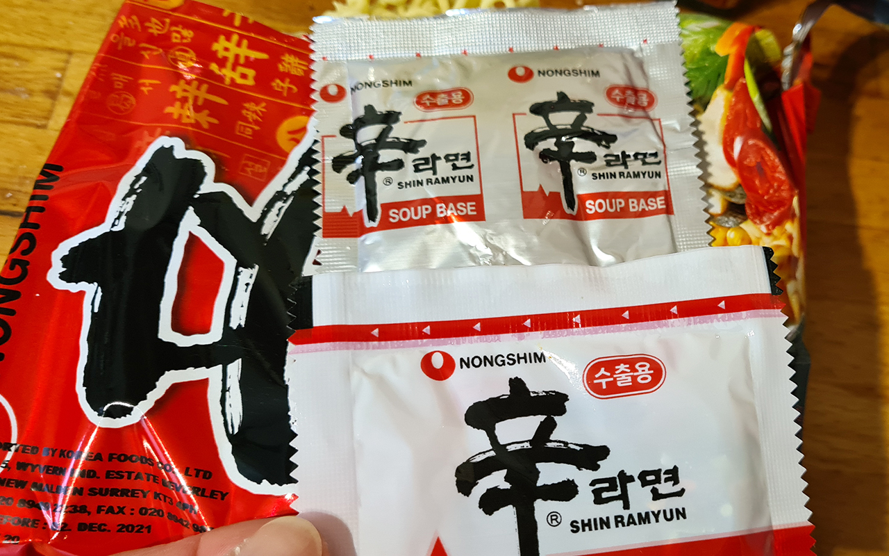 Start by bringing the saucepan with water in to boil, start with 300ml. You can put more water in if you want the soup to be less spicy. Once boiling add the soup packet and vegetable packet that come with the noodles and stir it in. Then add the noodles to the soup. Help the noodles to separate by lifting them a few times with chopsticks or fork.