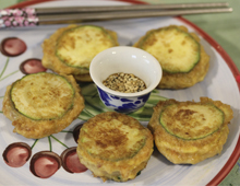 Tuna Courgette (Zucchini) Pancakes or sandwiches (Chamchi Hobak Jun) are a popular Korean side dish and is generally served with main meals. It is common to see variants of this in big celebrations such as new years or Chusuk (celebrating Harvest) in Korea as they are easy to make, look great and taste fantastic.