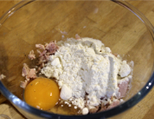 and put it in a bowl. Mix in 2 table spoons of plain flour, 1 egg and pinch of